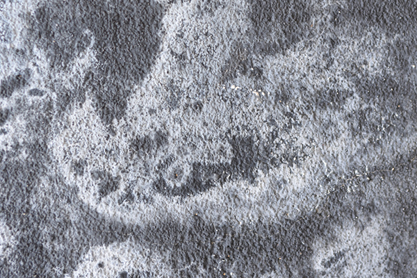 Manchas o áreas negras, grises o cafés/marrón resultado de crecimiento de hongos sobre sobre la superficie de la pintura de fachada, frecuentemente en áreas que tienden a permanecer humedad o que reciben poca luz.